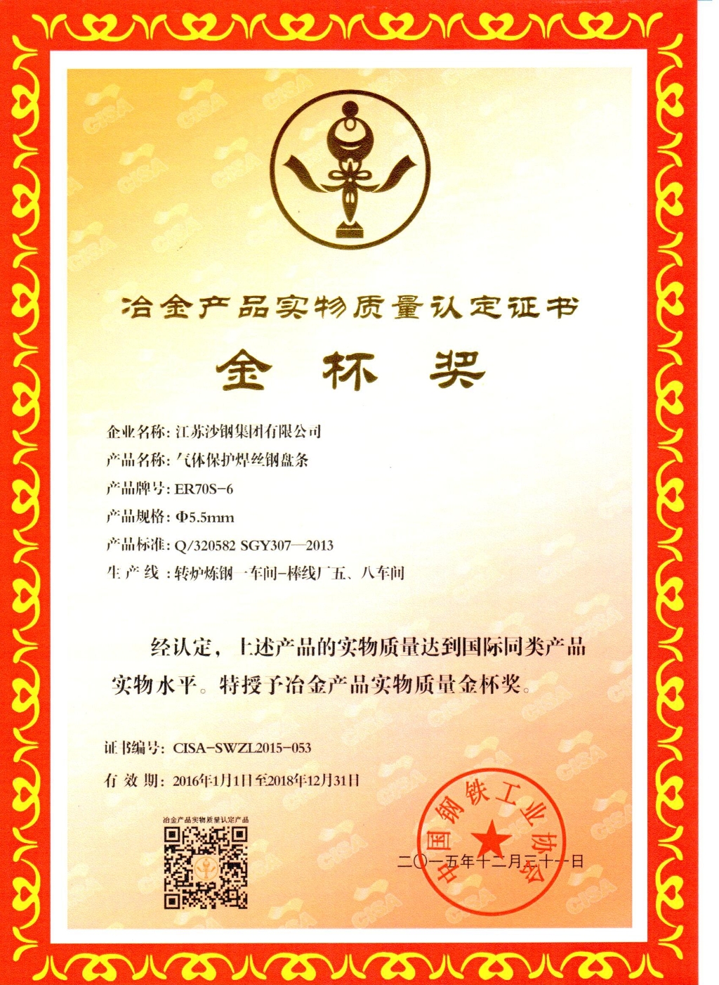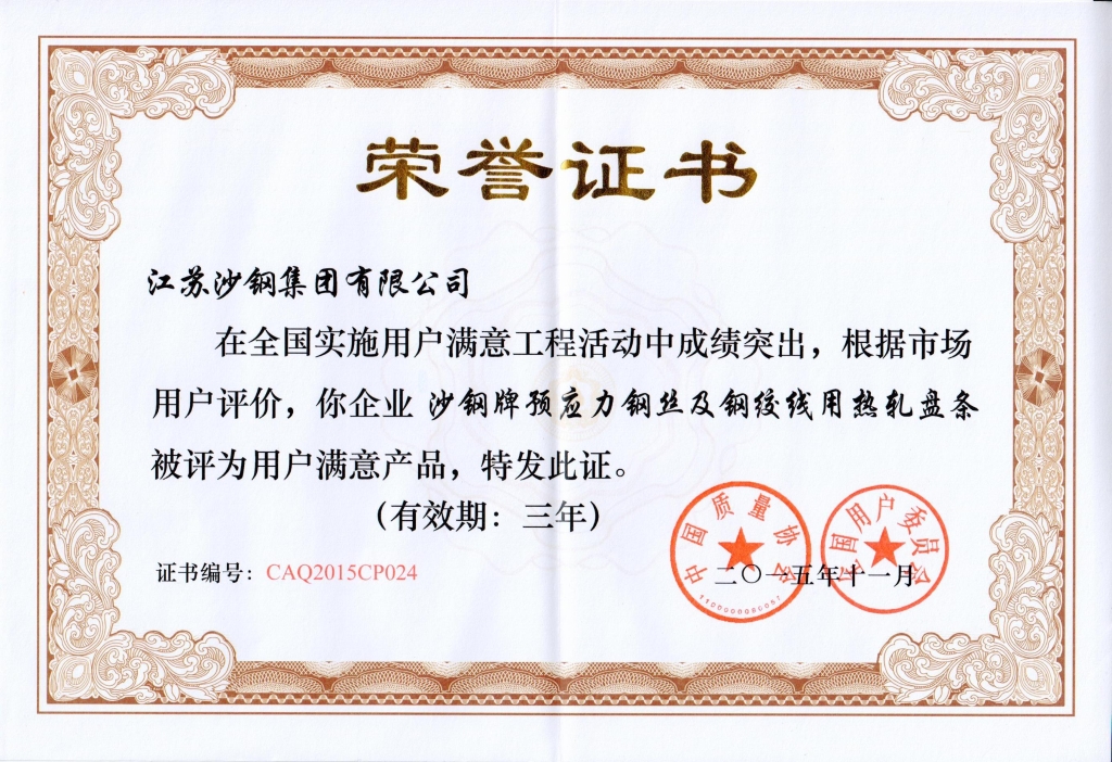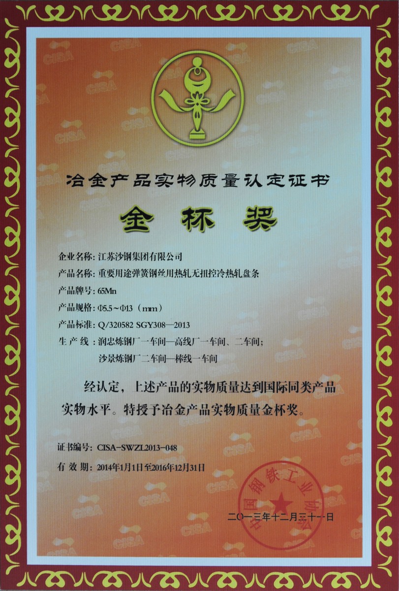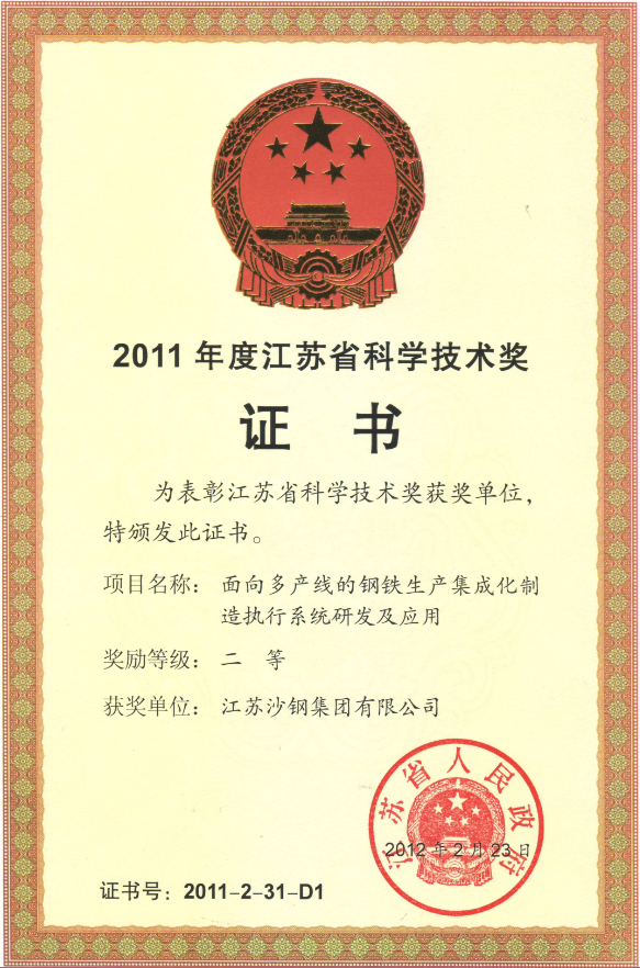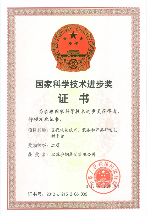 2014年度江蘇省科學技術獎三等獎——高性能焊絲鋼開發及工業應用