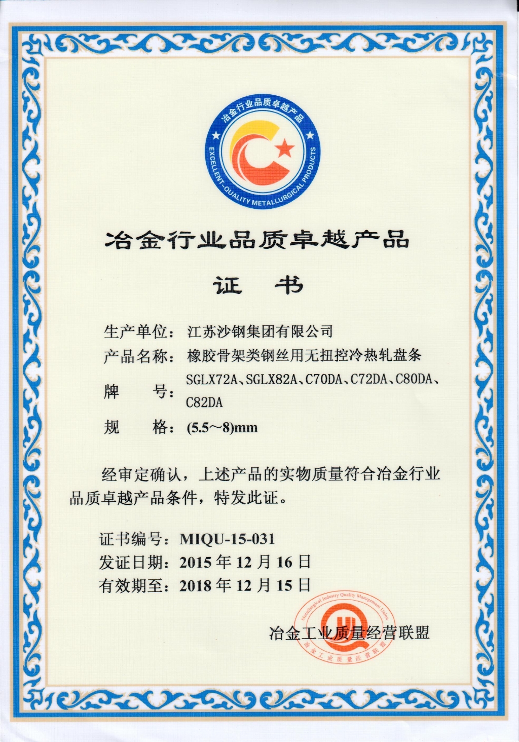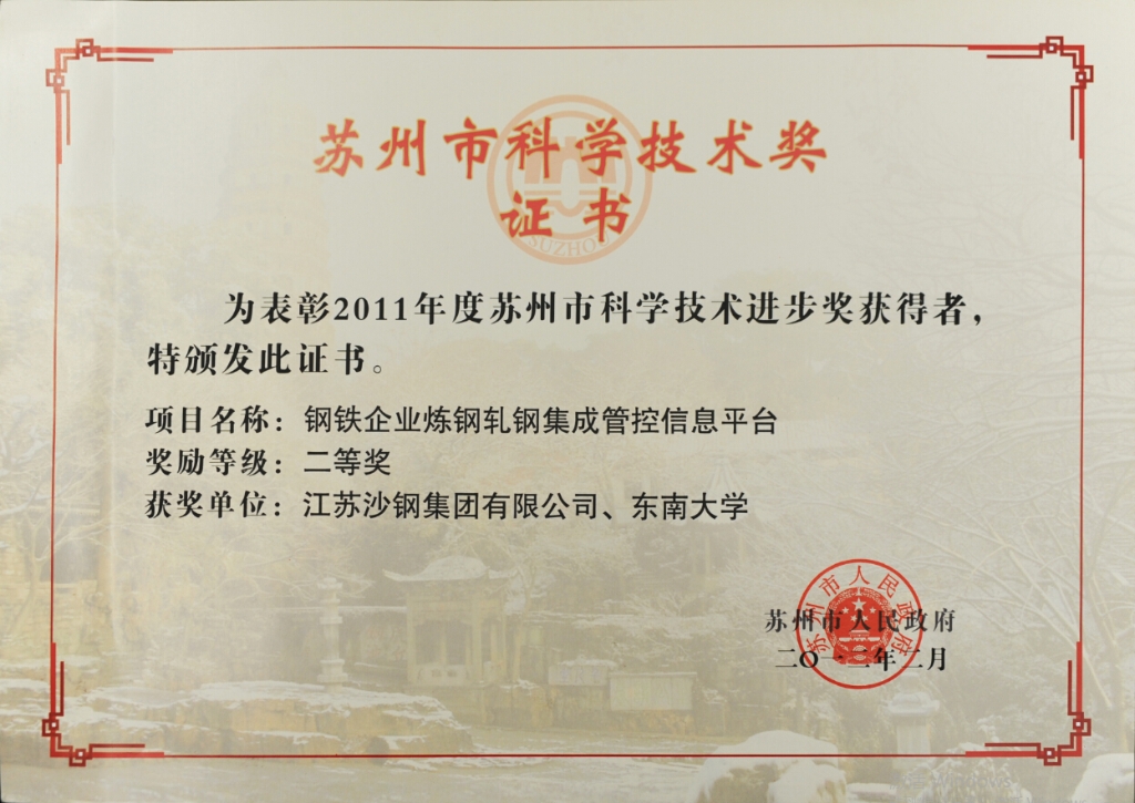 蘇州市科學技術進步獎——高碳鋼關鍵質量指標評價體系的建立與應用