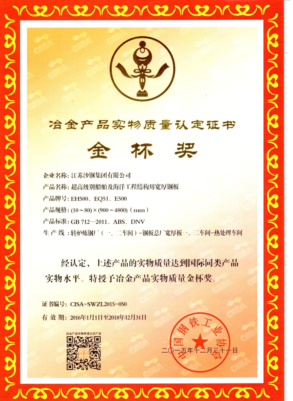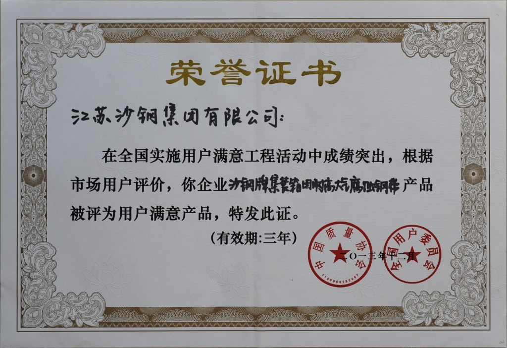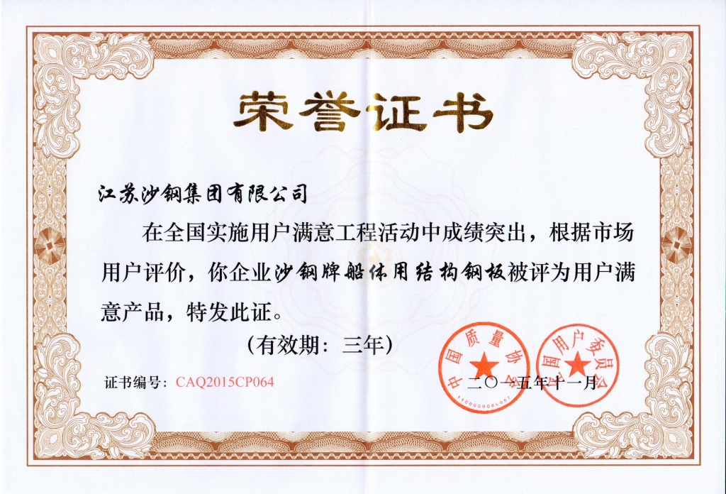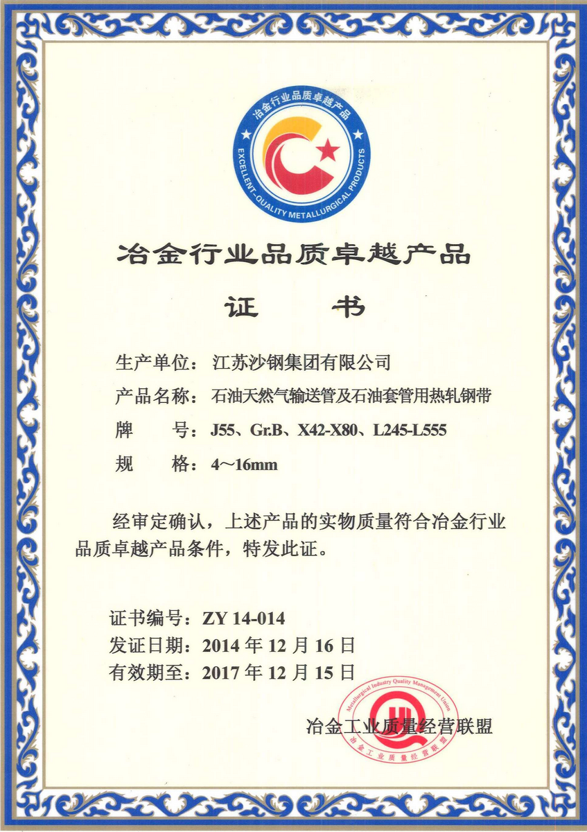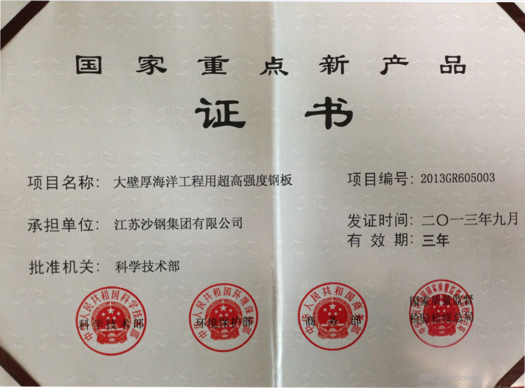 2014年度江蘇省科學技術獎三等獎——海洋工程用調質熱處理鋼板的開發
