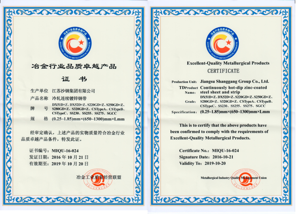 成形和結構用連續鍍鋅鋼板和鋼帶